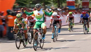 Tay đua Nguyễn Thành Tâm tung nước rút thần tốc để cán đích đầu tiên chặng đua quanh TP biển Quy Nhơn (45km)