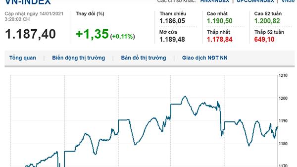 * Phiên giao dịch chiều 14/1/2021: VN-Index tăng hơn 1 điểm