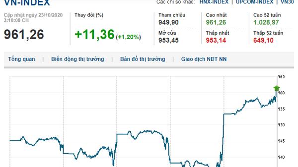 * Phiên giao dịch chiều 23/10/2020: VN-Index bứt phá vượt mốc 960 điểm