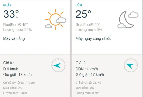• Nhiệt độ dao động trong khoảng 27-33 độ C. Lượng UV ở mức 7 lúc 12 giờ.