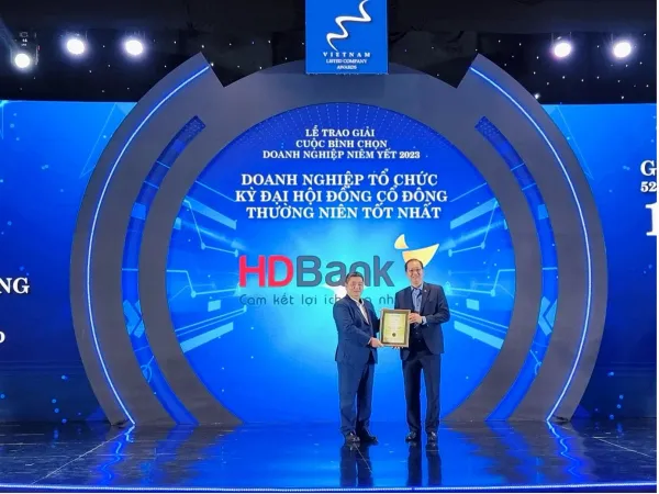 Ông Trần Xuân Huy, Phó tổng giám đốc HDBank nhận cú đúp giải thưởng Doanh nghiệp niêm yết vốn hóa lớn có Báo cáo thường niên tốt nhất - Nhóm ngành Tài chính và Doanh nghiệp Tổ chức kỳ ĐHĐCĐ thường niên tốt nhấtNăm 2023 là năm thứ 16 chương trình đồng hành cùng thị trường chứng khoán Việt Nam, có sự tham dự của lãnh đạo Ủy ban Chứng khoán Nhà nước, lãnh đạo các Sở Giao dịch chứng khoán, Tổng Công ty Lưu ký và Bù Trừ Chứng khoán Việt Nam và đại diện các thành viên thị trường.