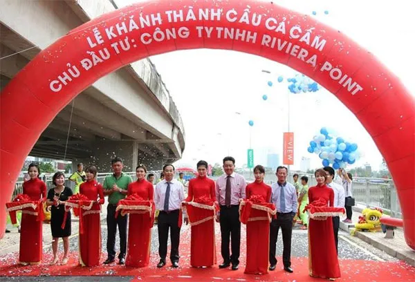 Lãnh đạo quận 7 TPHCM cùng Công ty Keppel Việt Nam khánh thành cây cầu Cả Cấm. Ảnh: baodautu