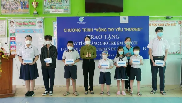 Đây là hoạt động nằm trong chương trình “Vòng tay yêu thương” - trao tặng máy tính bảng cho trẻ em mồ côi có hoàn cảnh khó khăn do dịch Covid -19.