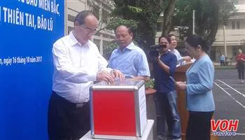Bí thư Thành ủy TPHCM Nguyễn Thiện Nhân quyên góp đồng bào bị thiên tai
