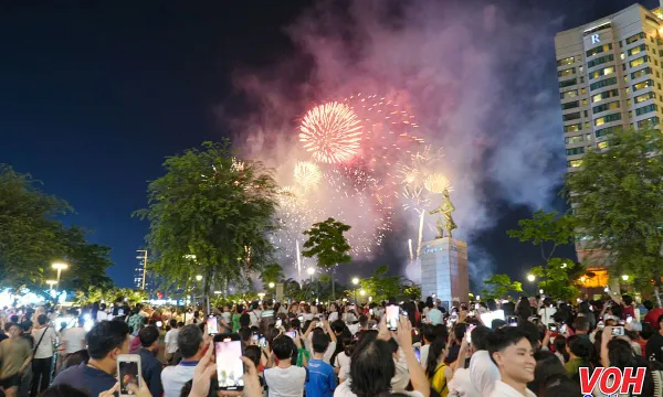 Trước giờ khai hỏa, dòng người đổ về trung tâm TP đông nghịt. Tại khu vực công viên Bến Bạch Đằng, phố đi bộ Nguyễn Huệ, tượng đài Trần Hưng Đạo... người dân tụ tập từ rất sớm, nhiều gia đình mang theo ghế xếp, đồ ăn nhẹ để chờ đón thời khắc pháo hoa bừng sáng.