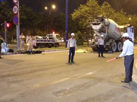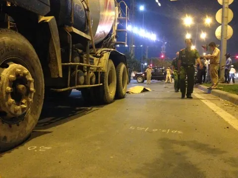 Khoảng 18h tối 11/4, chiếc xe bồn trộn bê tông biển số 51E-030.81 (chưa rõ người điều khiển) vừa từ cầu Thủ Thiêm chạy hướng ra đường Mai Chí Thọ (Q.2) thì gây tai nạn.