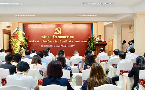 Ngày 5/4, tại Bà Rịa Vũng Tàu, Ban Tổ chức Trung ương phối hợp với Đài Truyền hình Việt Nam tổ chức hội nghị tập huấn nghiệp vụ tuyên truyền công tác tổ chức xây dựng đảng cho hơn 50 phóng viên, biên tập viên công tác tại các đơn vị thuộc Đài Truyền hình Việt Nam.