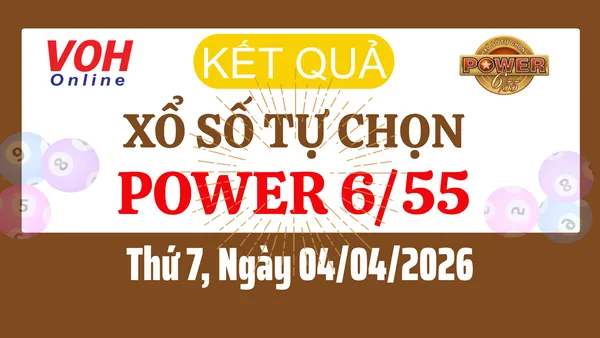 Kết quả xổ số Vietlott POWER 655 kỳ quay thưởng ngày 04/04/2026